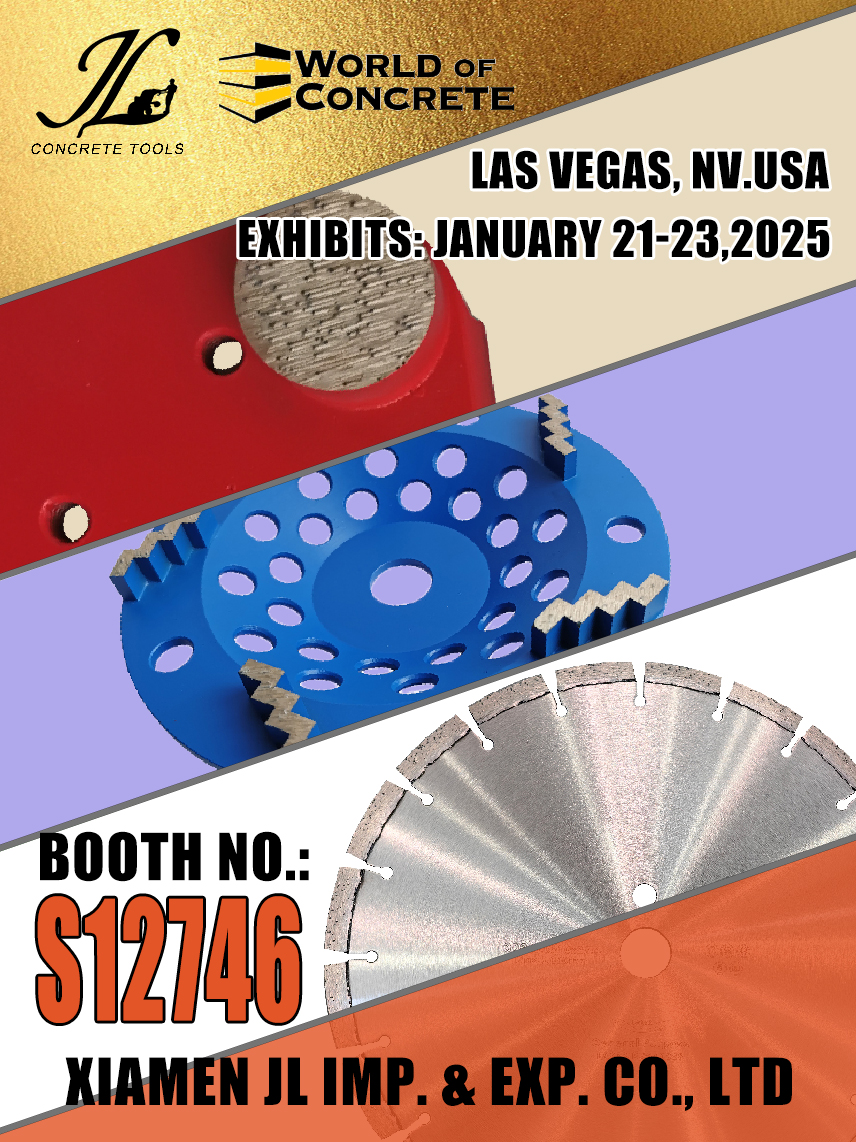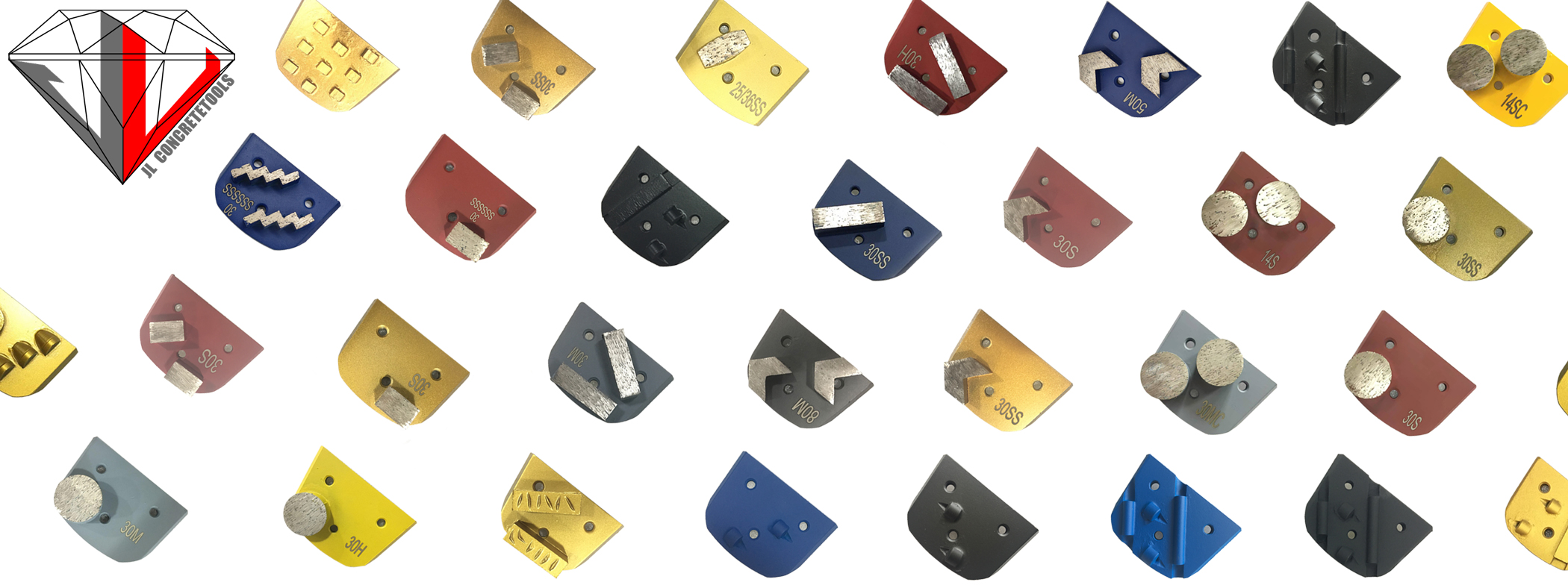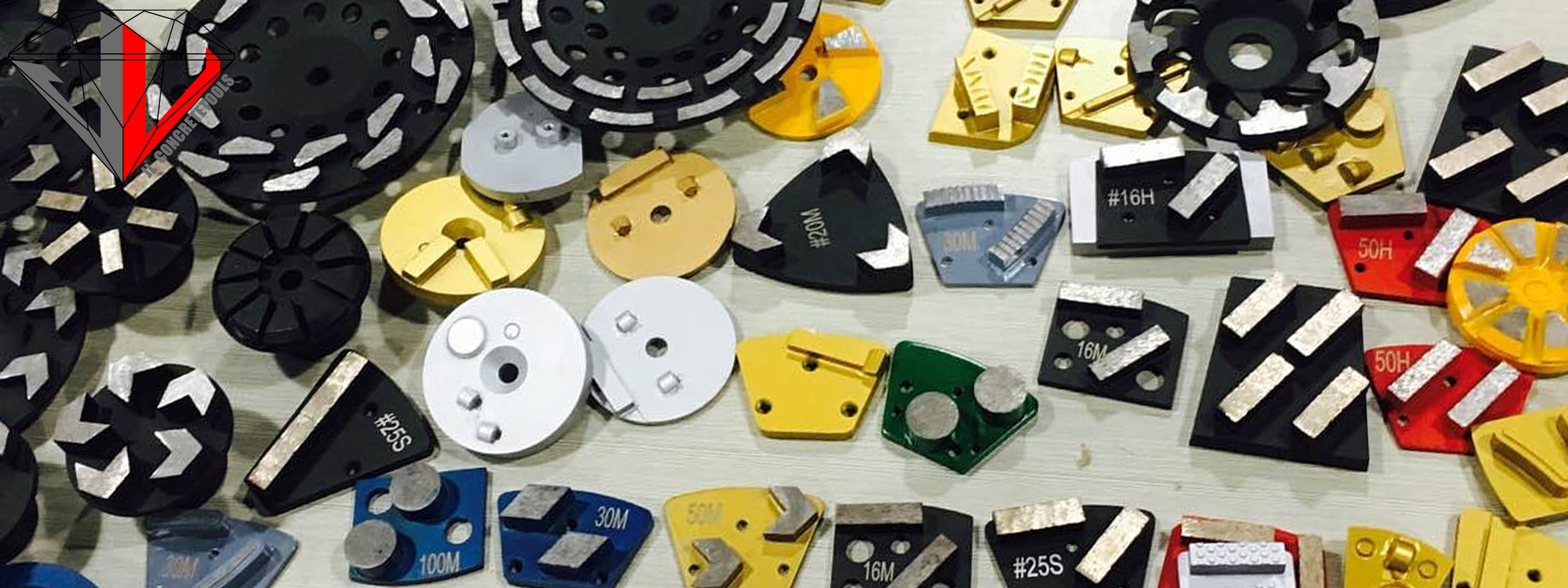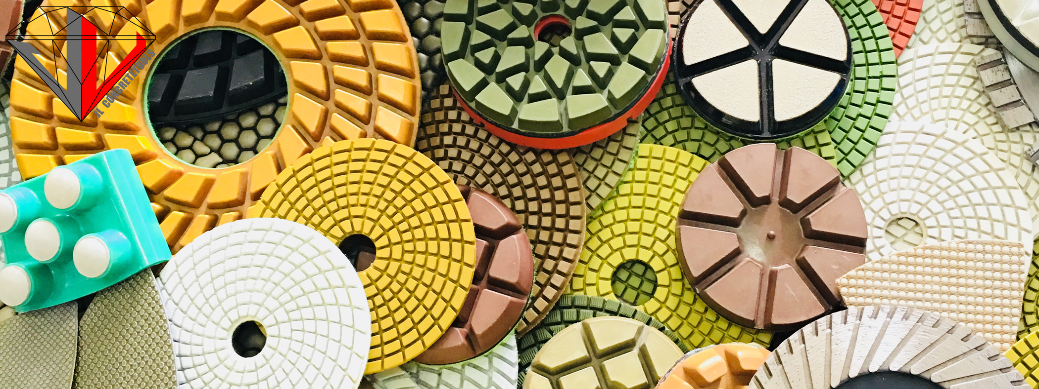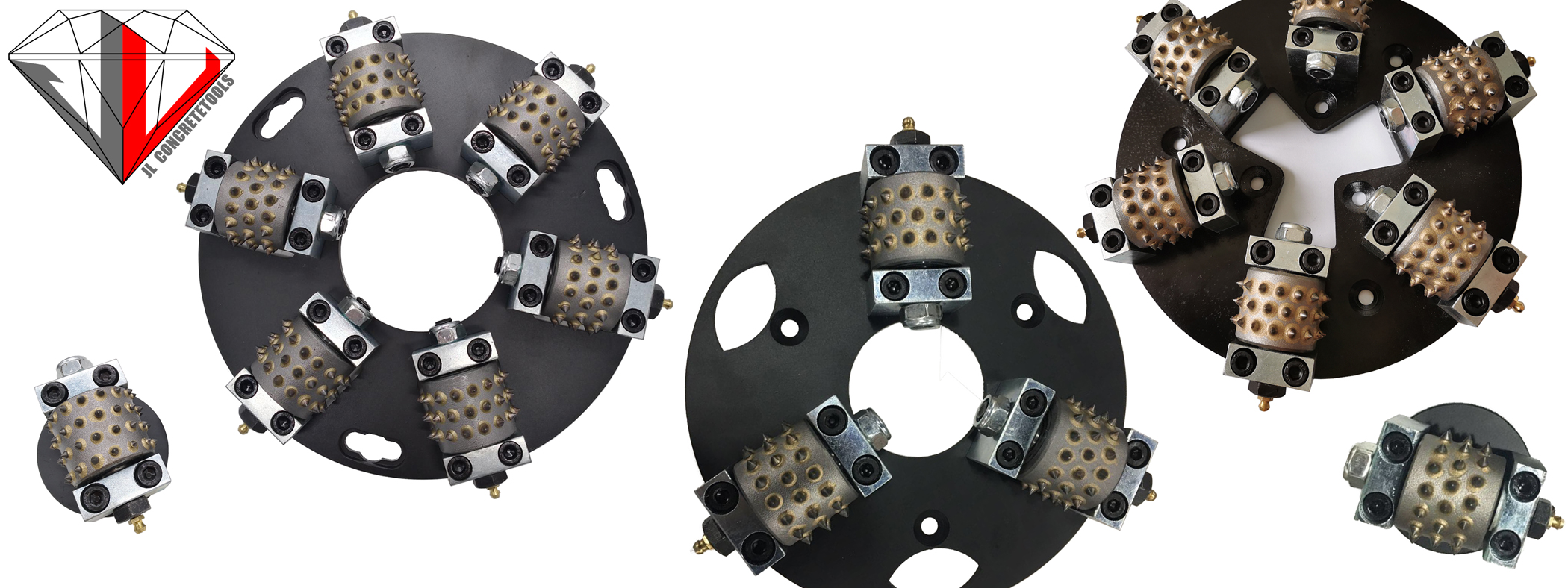 Concrete Diamond Tools including bush hammer rollers and PCD peparation tools, metal grinding disc, resin polishing pads.